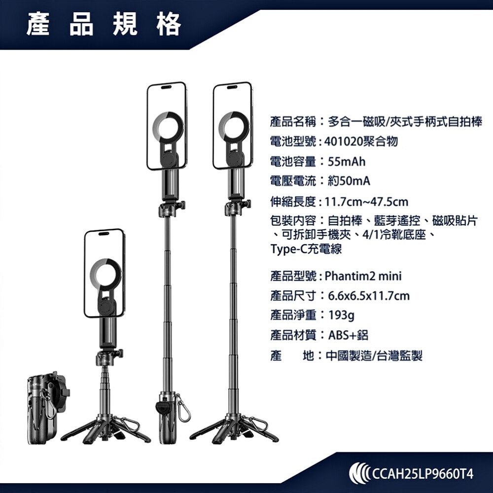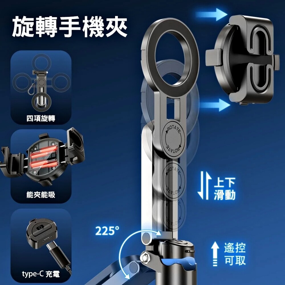 磁吸式輔助桿:穩穩吸附在手機上,360度旋轉,使拍攝更加穩定。