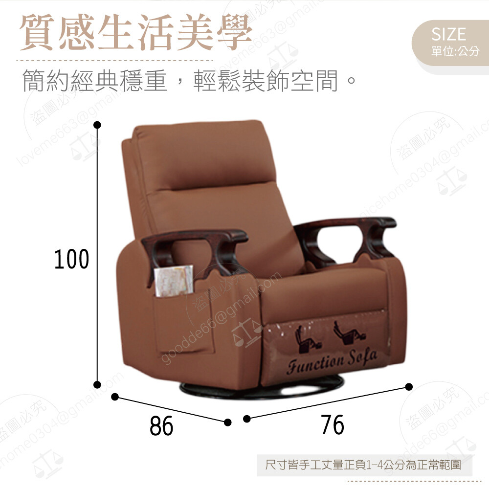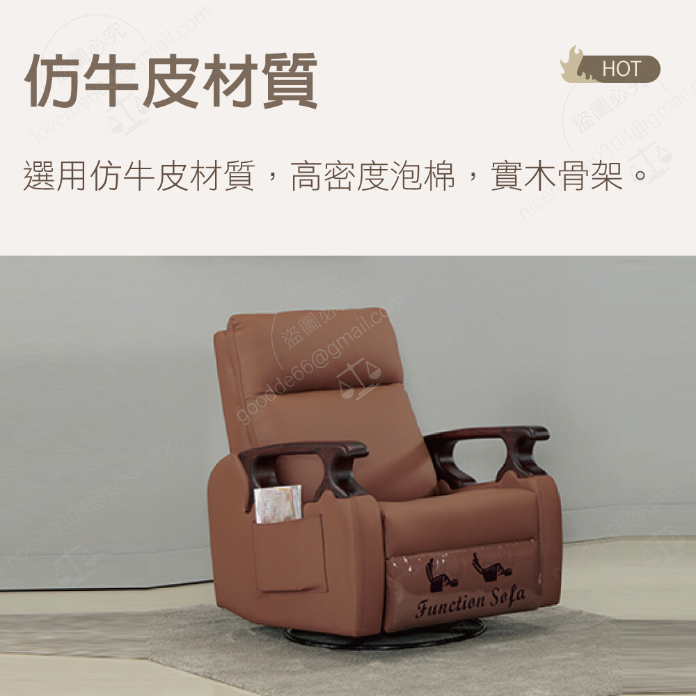 仿牛皮 高密度泡棉 實木骨架 可360度旋轉