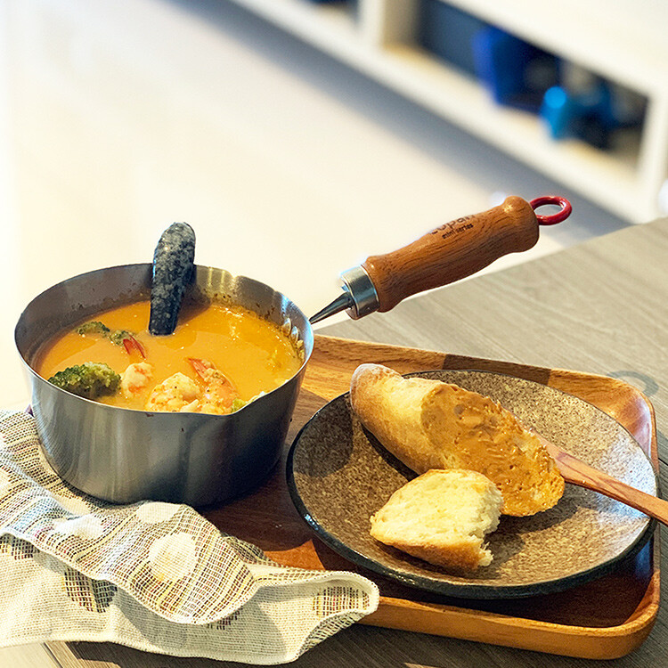 鍋身外則由柔軟布料或海綿以醋清洗擦拭即可保持光亮。