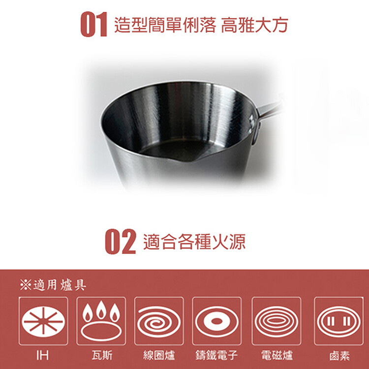 日本授權台灣製造品質安心,15cm的完美尺寸,適合小家庭或單身生活,鍋身採用430不鏽鋼材質,無塗層最安心,蓄熱效果佳,導熱快、均勻、少油煙、省能源,好清洗、不卡油垢,單邊引水導角設計不回漏,原木握柄,握感極佳好拿好握不燙手,料理食物好鍋具,IH電磁爐對應,瓦斯爐、電磁爐、電爐、陶瓷爐、鹵素爐通通適用。