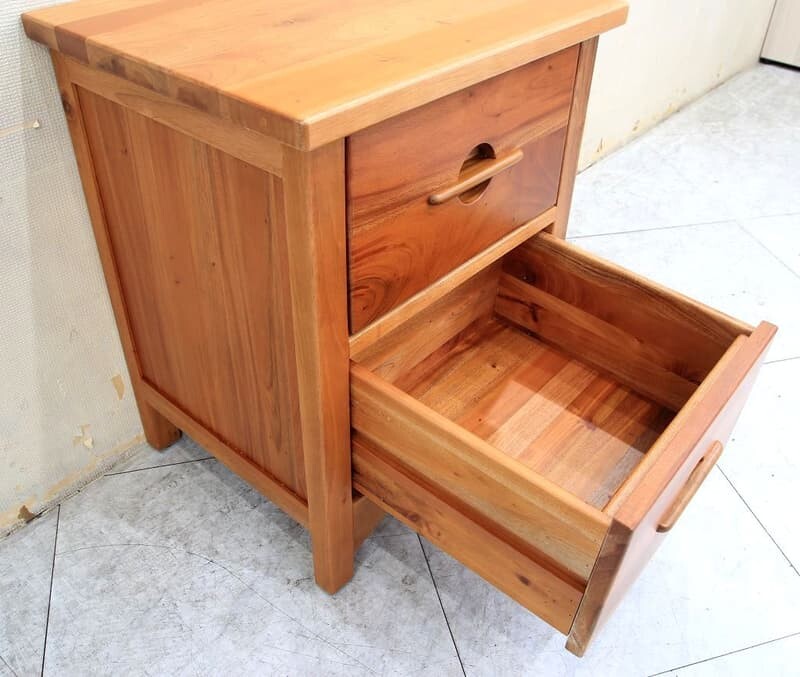 尺寸48*40*61cm , 側邊腳高10cm 價格 床頭櫃 , 5700元 6193013材質板材 : 100%桃花心木全實木材質,骨架厚實堅固耐用 塗裝 : 噴漆圓弧做工質感細緻 五金 : 內建二抽採木製軌道舊品回收說明若您有舊傢俱需要交由我們回收處理,需支付舊品回收處理費用,費用 必需另外評估及收取。如有疑問可先透過「問與答」詢問。 另一種方式,可嘗試撥打免付費清運專線 0800-085-717,詢問當地清潔隊