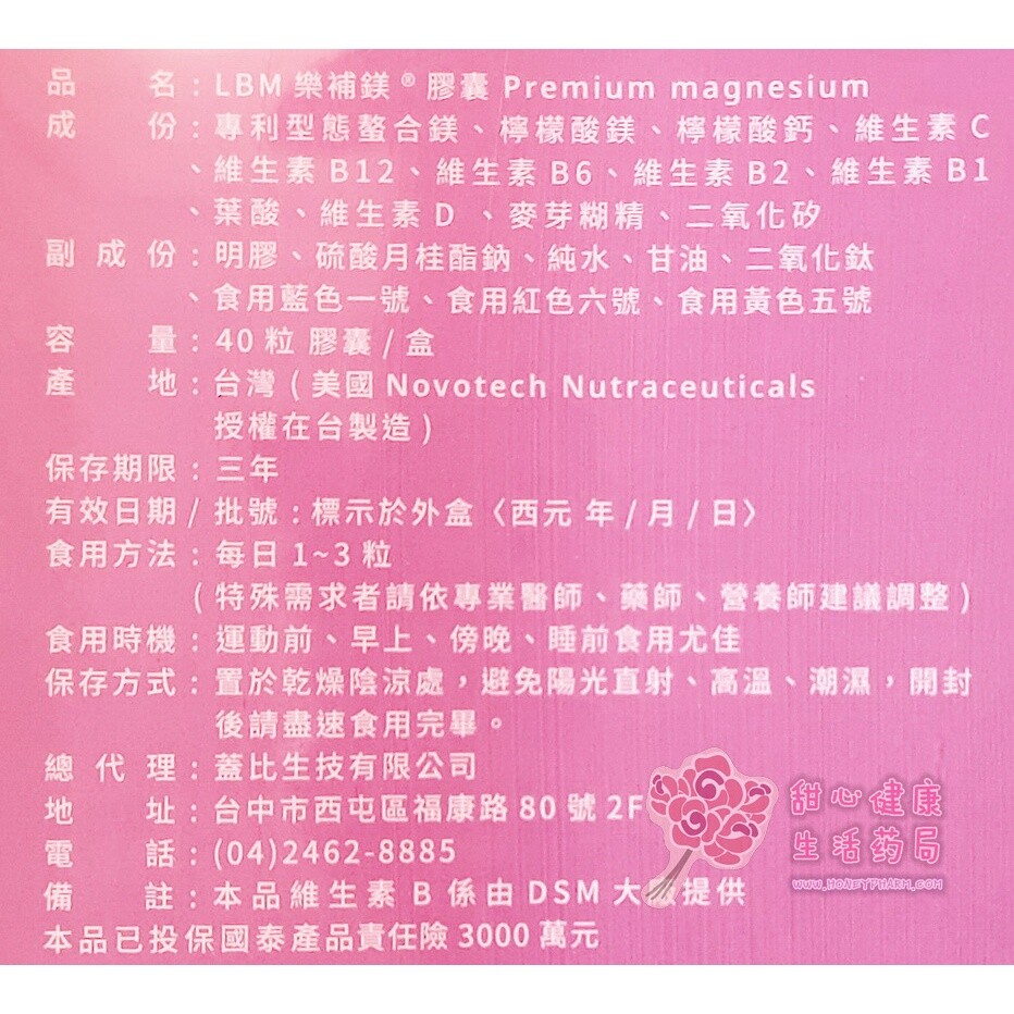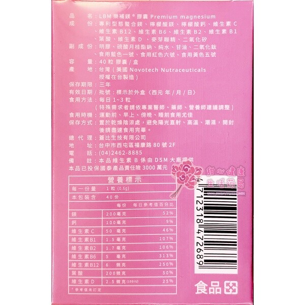 產品名稱 : LBM 樂補鎂膠囊(40粒/盒)