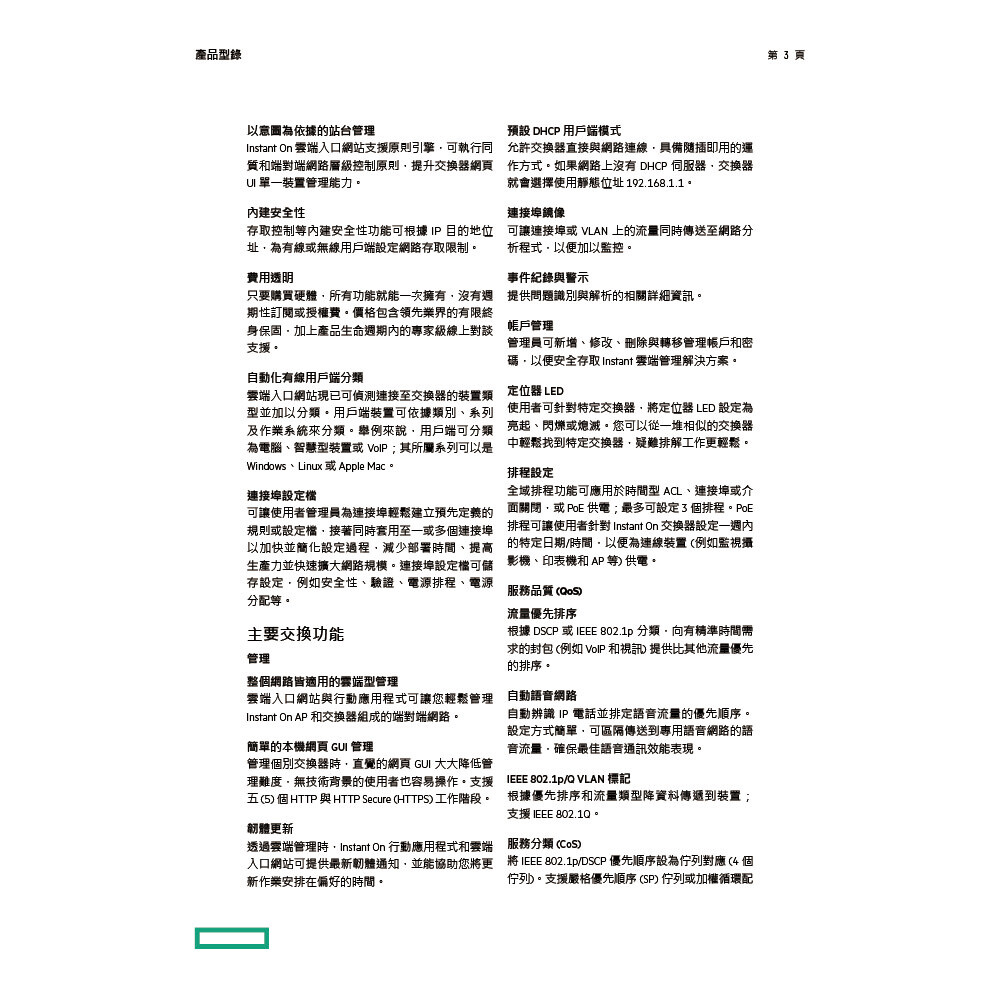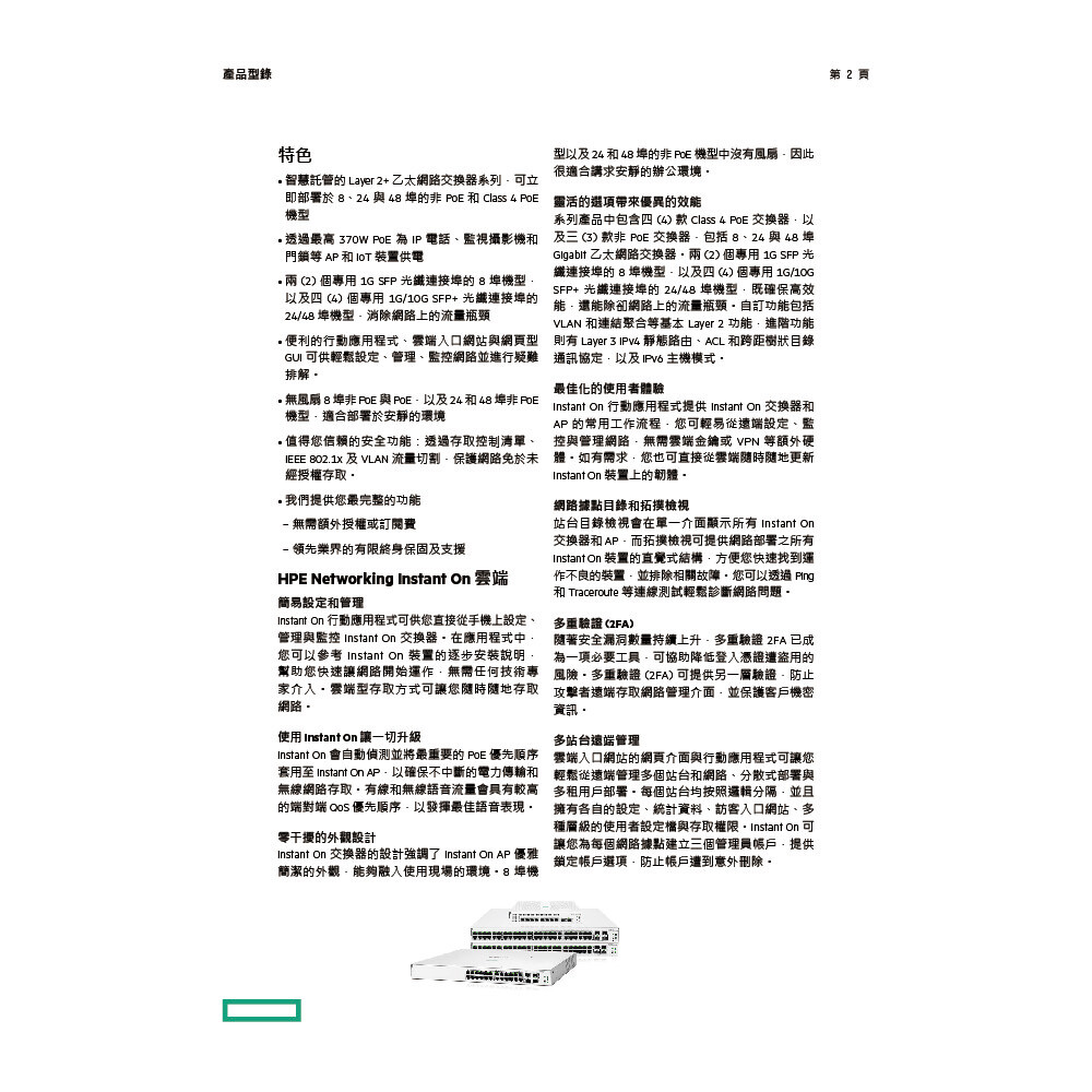 • 無風扇 8 埠非 PoE 與 PoE,以及 24 和 48 埠非 PoE機型,適合部署於安靜的環境