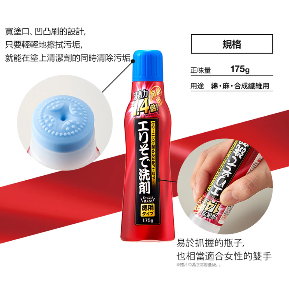 ●請直接塗在衣領袖口的髒汙上。放置約5-10分鐘以上效果更好。
