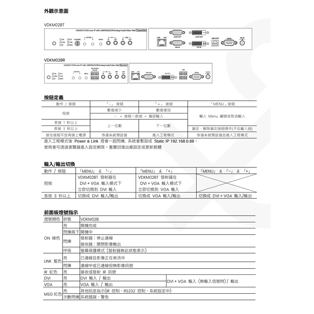 昌運監視器 VDKM02B VGA/DVI KVM 網路型分佈式延長器