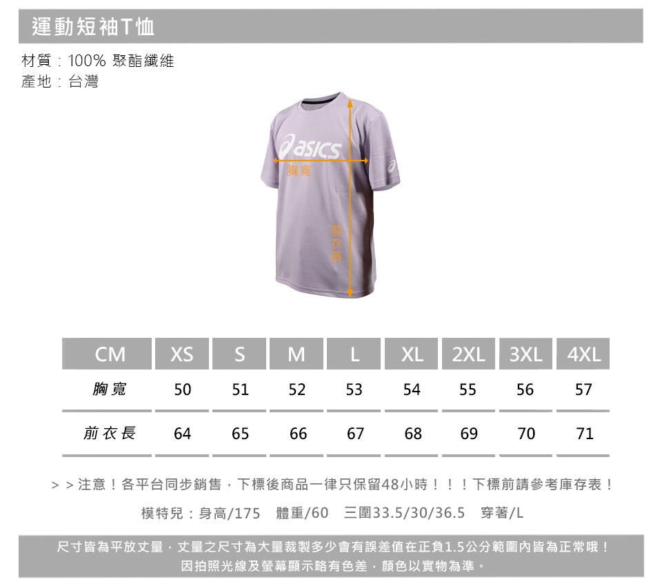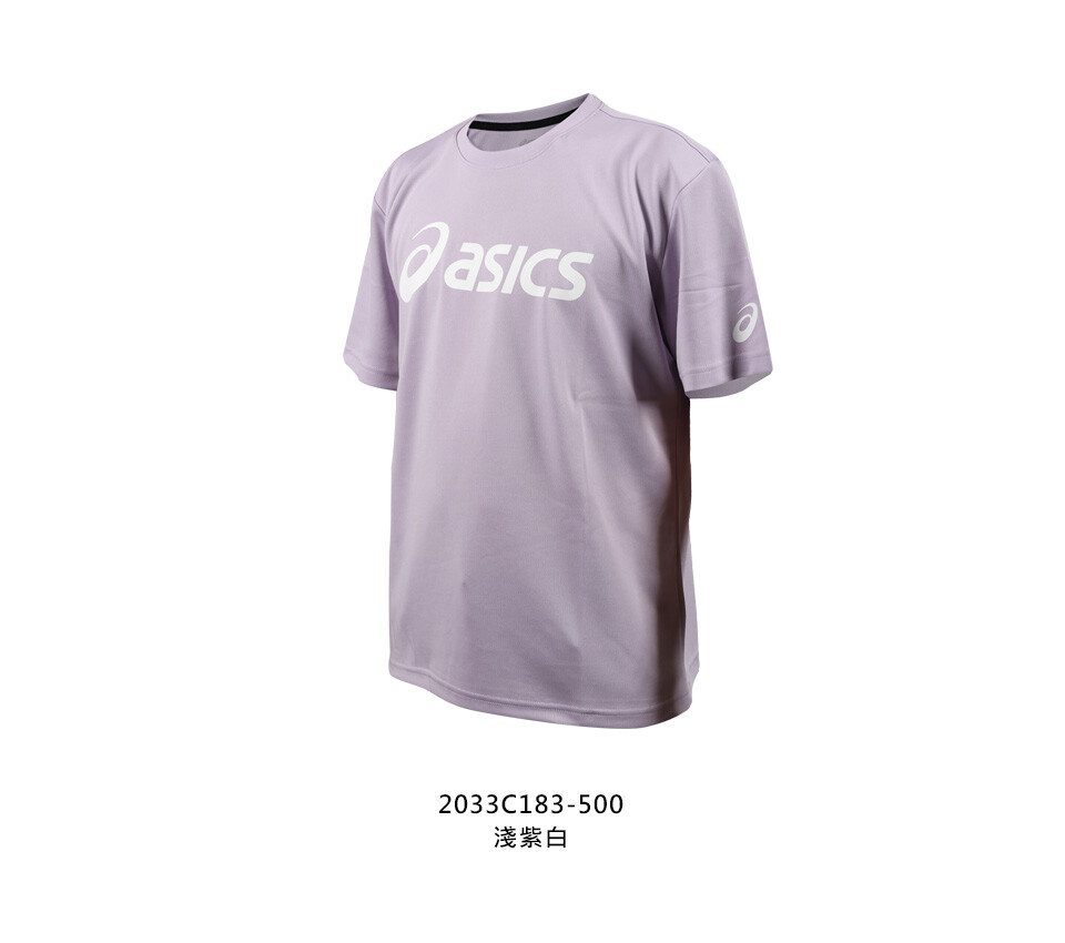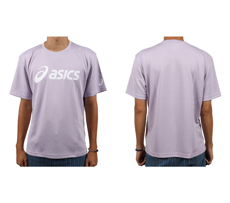 ASICS 男運動短袖T恤-台灣製 吸濕排汗 休閒 運動 上衣 淺紫白