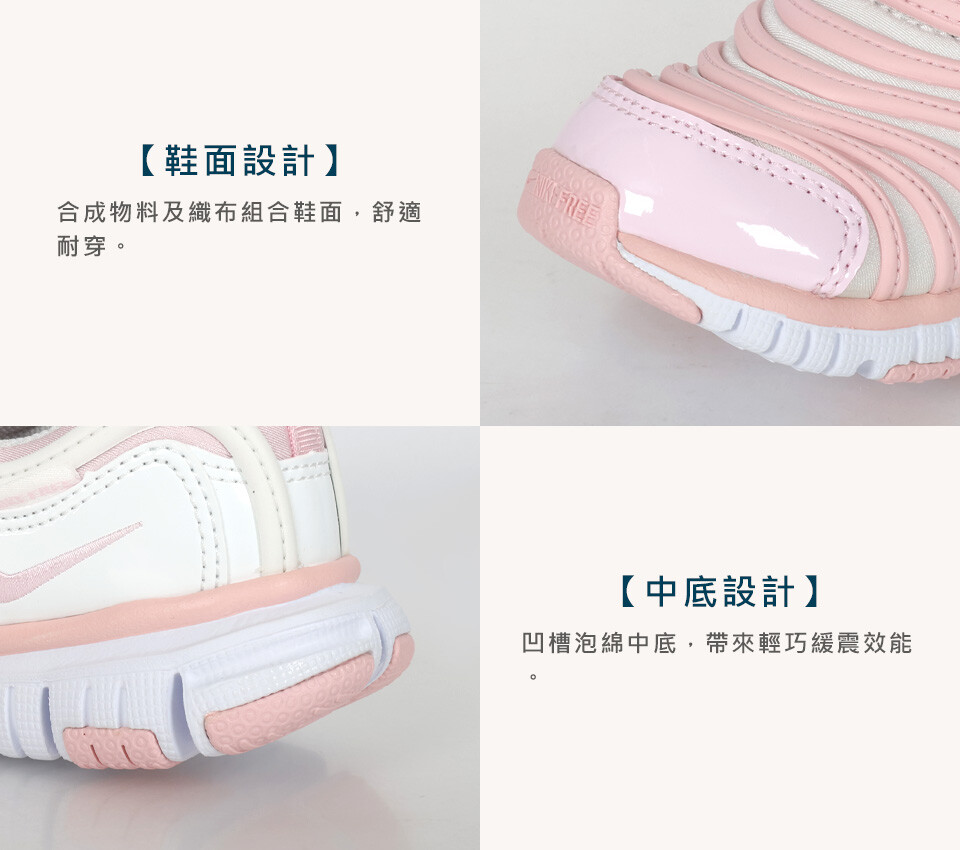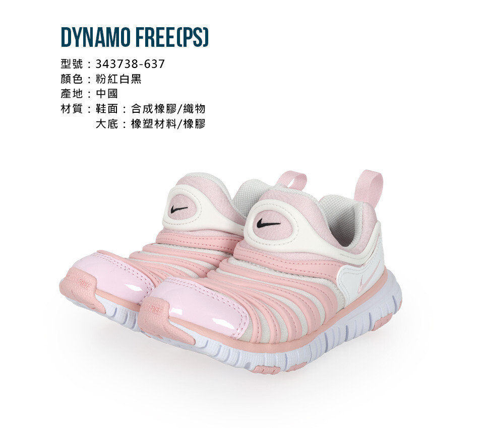 NIKE DYNAMO FREE-PS 女中童毛毛蟲運動鞋-慢跑 休閒 粉紅白黑