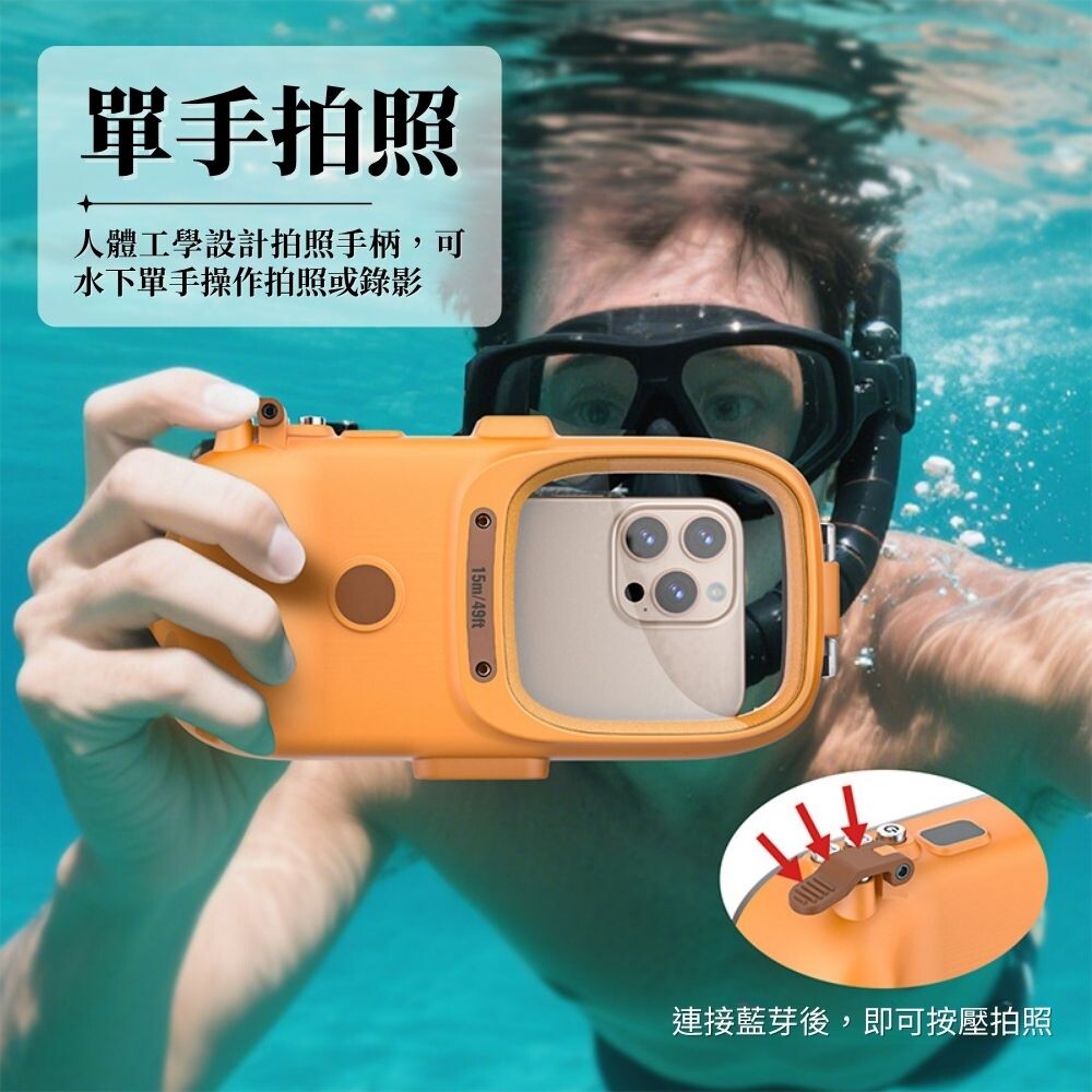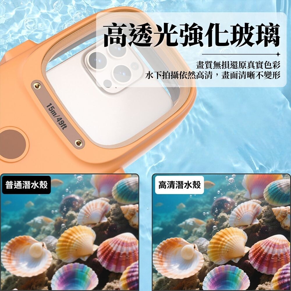可承受海底15米水壓,達到全方位防水效果,浮潛、游泳、潛水都能安心拍攝