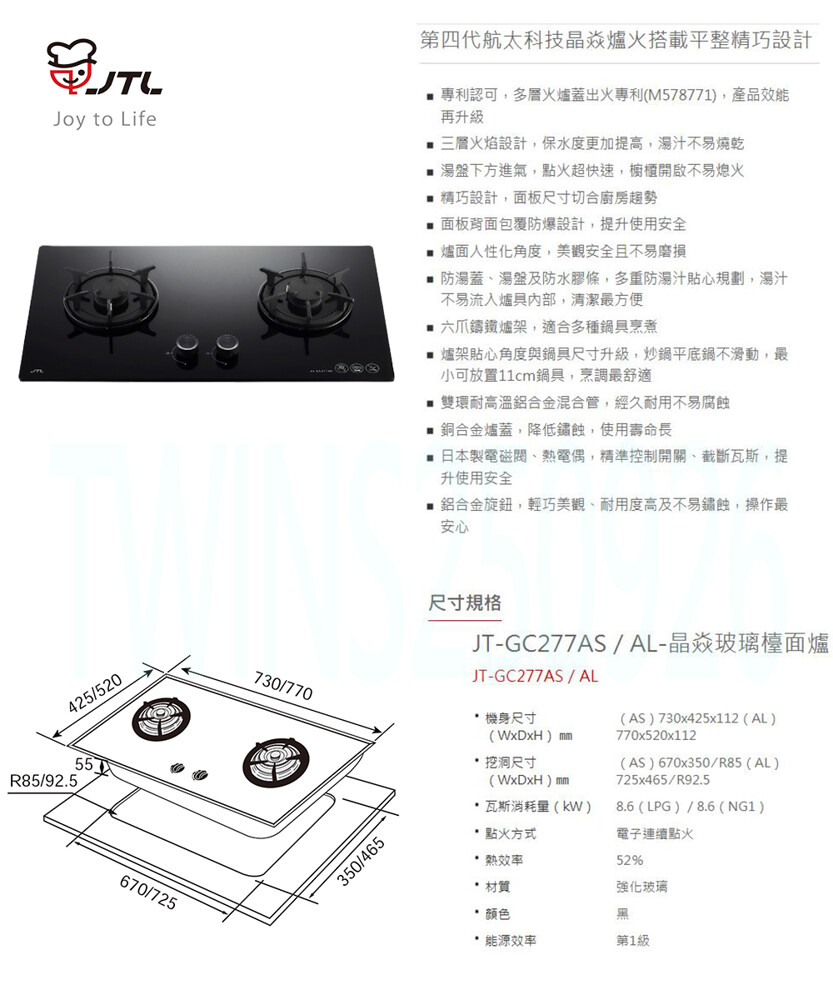 型號:JT-GC277AS-晶焱玻璃檯面爐