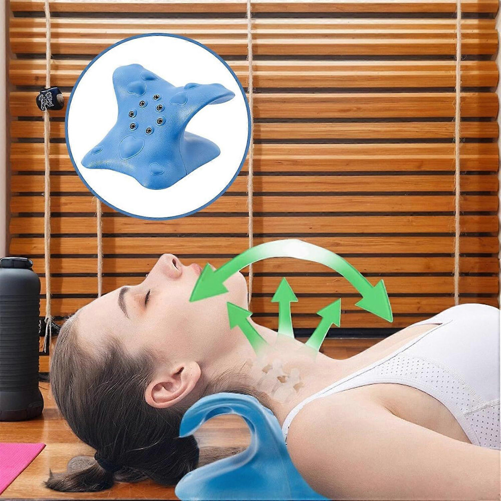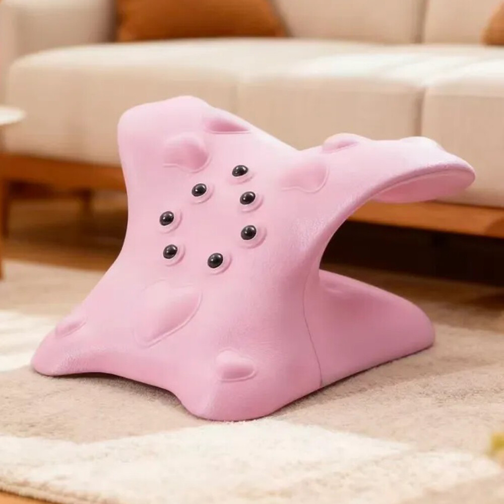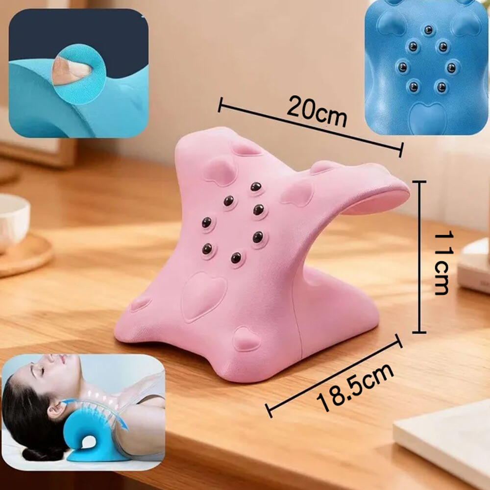 將枕頭輕輕置於頸部下方,調整位置,讓頸部自然貼合按摩點
