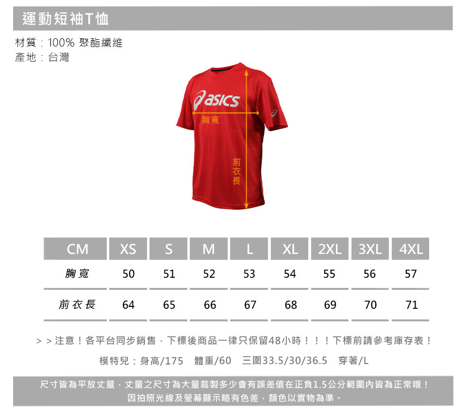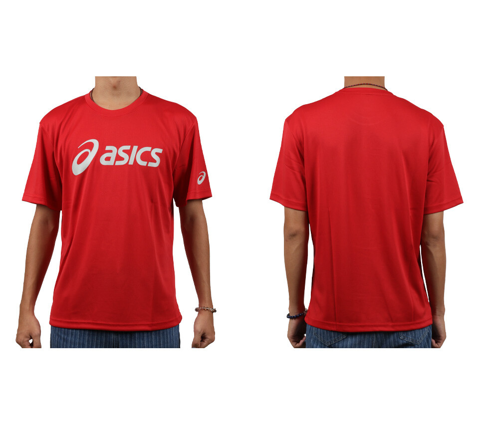 ASICS 男運動短袖T恤-台灣製 吸濕排汗 休閒 運動 上衣 紅淺灰