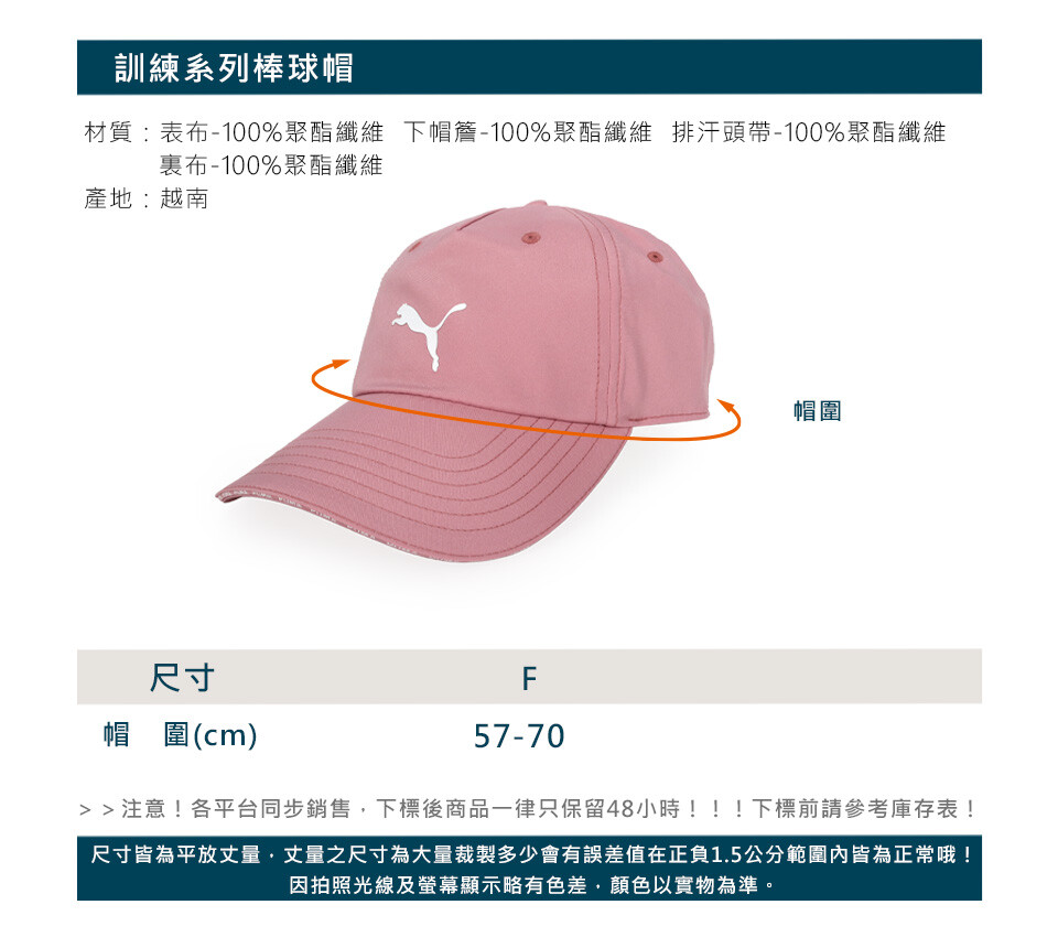 PUMA 訓練系列棒球帽-防曬 遮陽 棒球帽 運動 帽子 玫瑰粉白