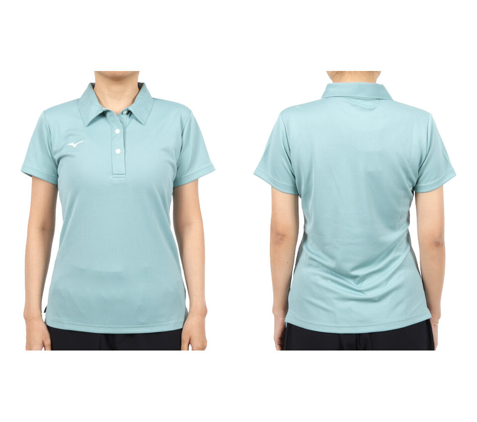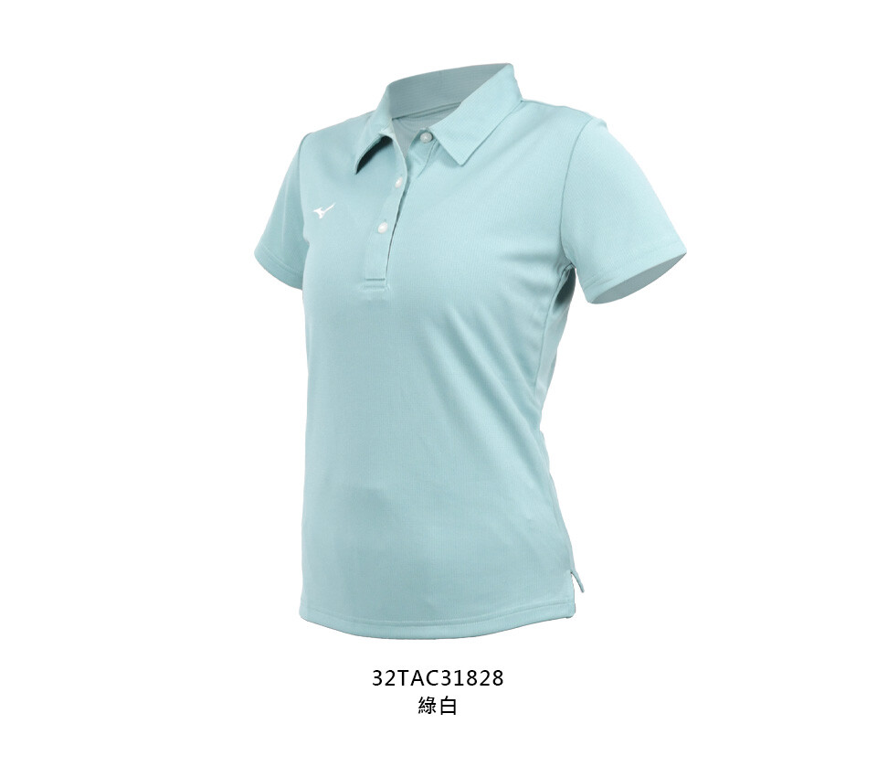 MIZUNO 女短袖POLO衫-台灣製 吸濕排汗 上衣 休閒 慢跑 美津濃 綠白