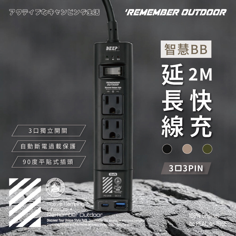 商品名稱:樂活不露 智慧BB快充延長線3口3PIN GaN25W 2.0米