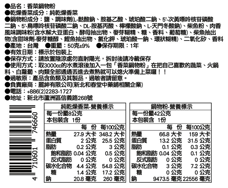 出品商 : 麗紳有限公司(新北和春堂中藥鋪相關企業)