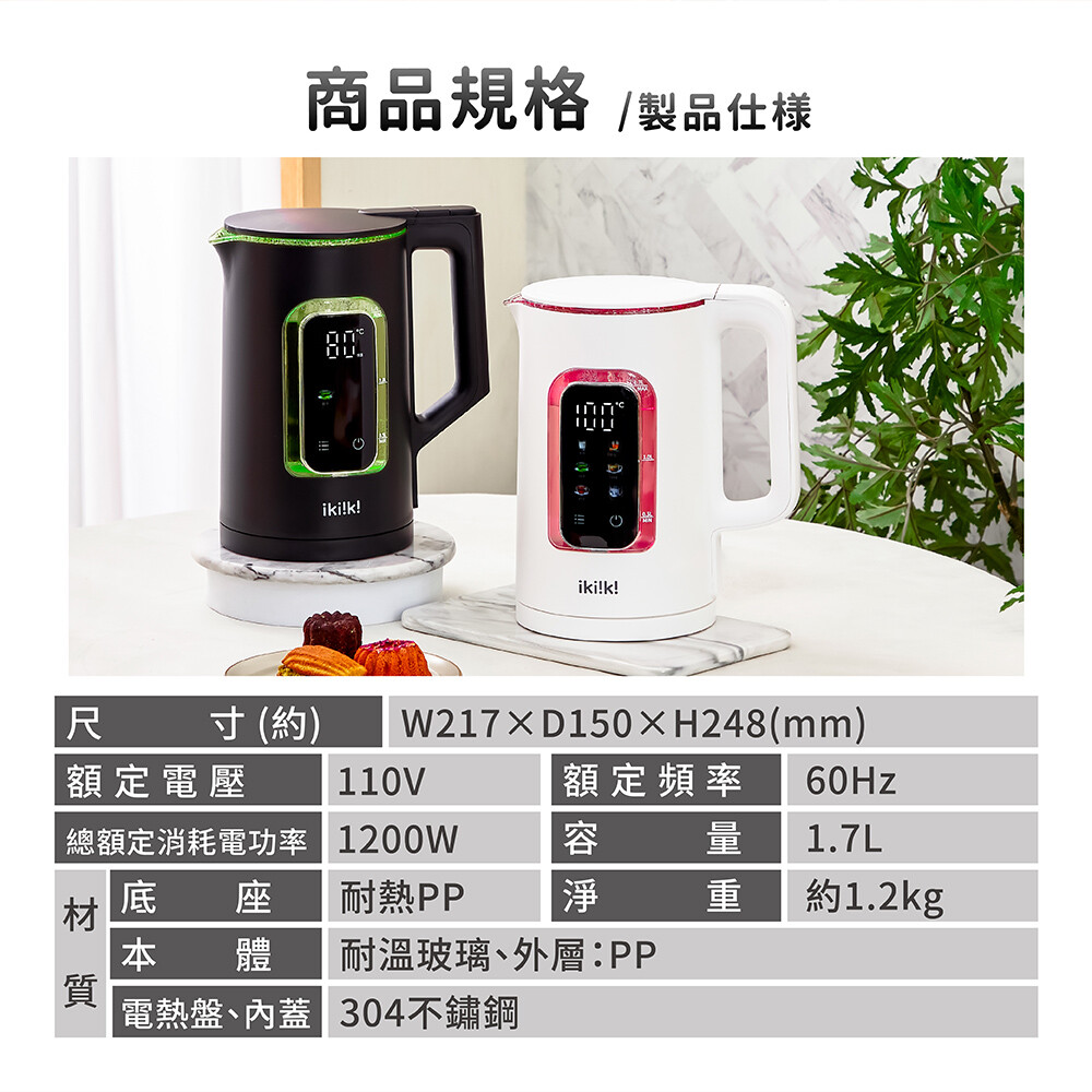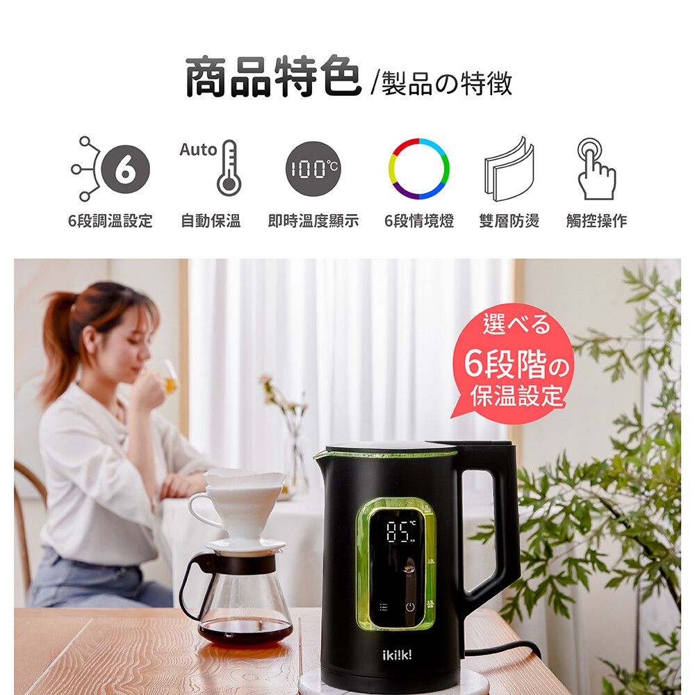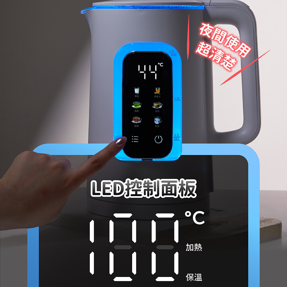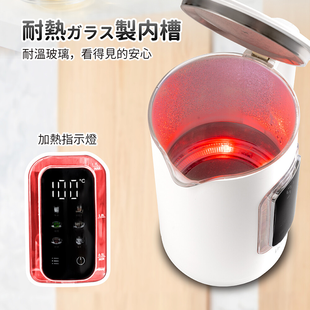 .美形玻璃壺身、光色で温度を知らせる電気茶壺。