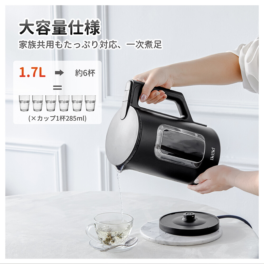 .1.7L適中容量×1200W快速煮水,任意場合皆適用