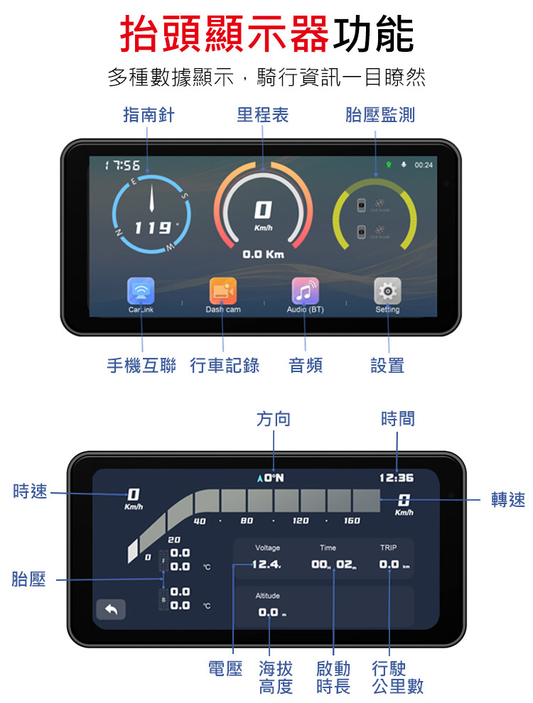 ◆抬頭顯示器功能,騎行數據一目瞭然