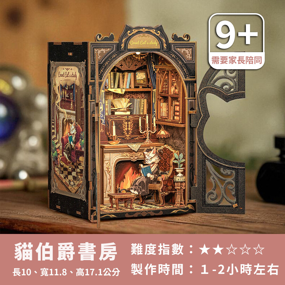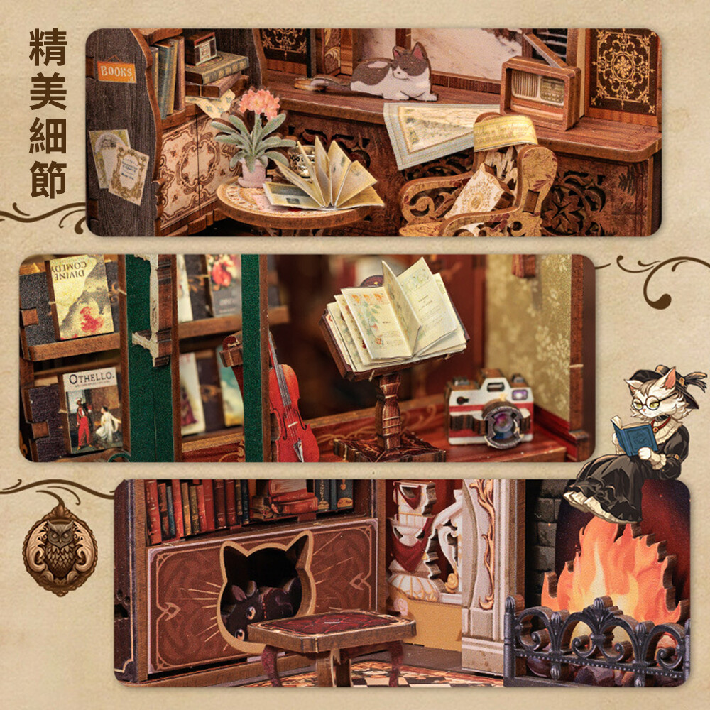 是一款以木質拼裝為核心、結合微景觀與燈光效果的手作套件,適合書架、桌角、居家或辦公桌的裝飾擺設。