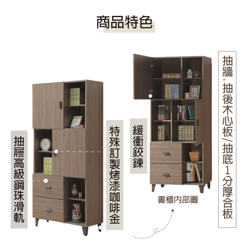 《奈斯家具Nice》785-05-HL 柏亞耐磨ABS木心板2.7尺木門書櫃
