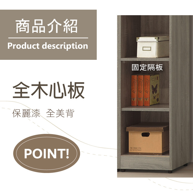 《奈斯家具Nice》262-08-HL 灰梧桐無抽開放式1.3尺書櫥/書櫃