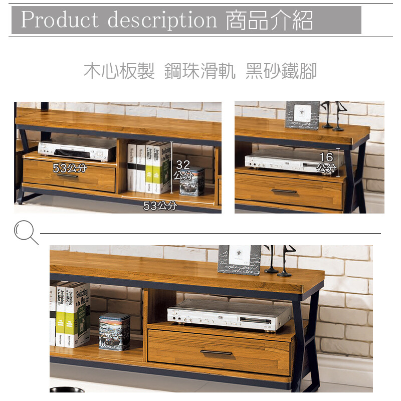 木心板製 鋼珠滑軌 黑砂鐵腳
