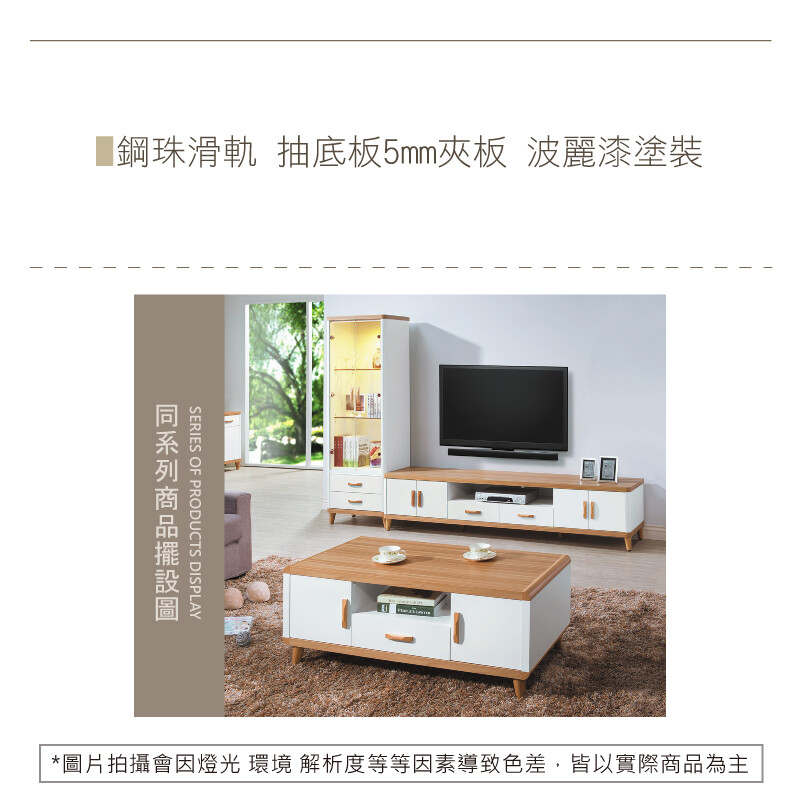鋼珠滑軌 圓角實木白色烤漆