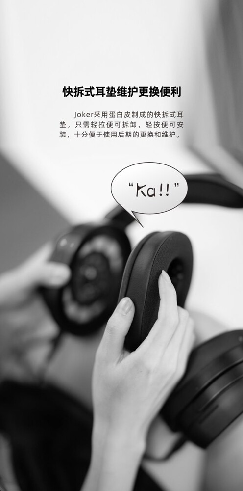 不僅如此,joker搭載的更為便利的線材/耳罩更換結構也讓其在使用過程中更易於拓展和維護。