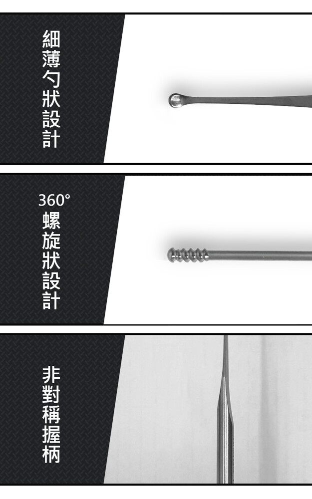 03.螺旋形和圓盤形雙向設計,有效清除耳垢。
