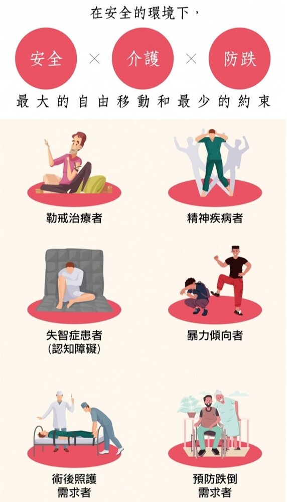 ◆ 合於人性化安全設計 約束後仍可維持活動機能