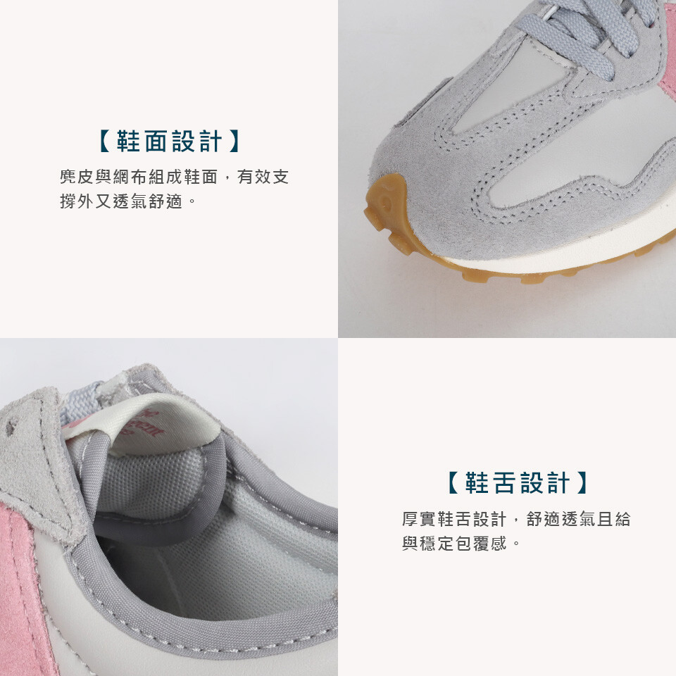 NEWBALANCE 女休閒運動鞋-麂皮 327系列 NB N字鞋 淺灰粉紅