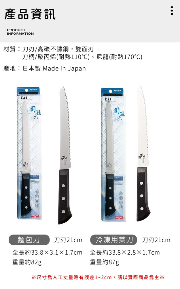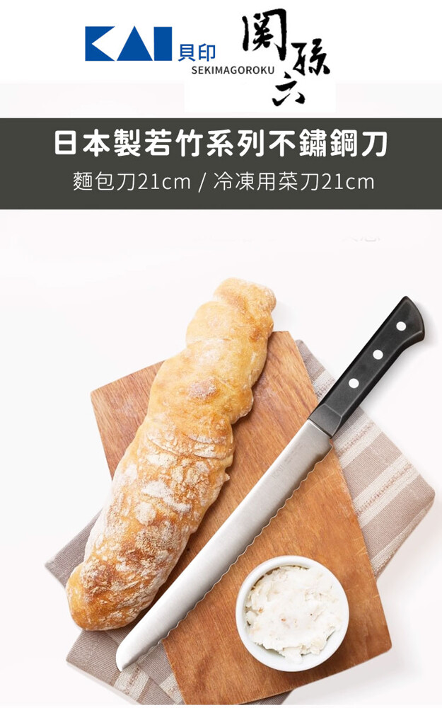 品名:【貝印】關孫六 若竹系列不鏽鋼麵包刀21cm
