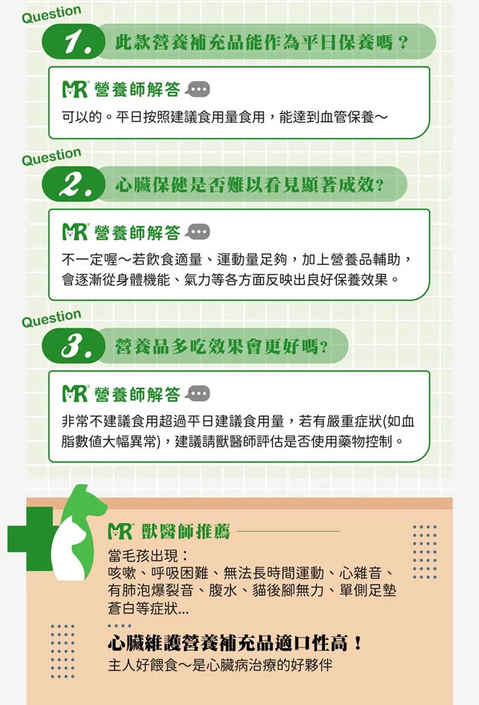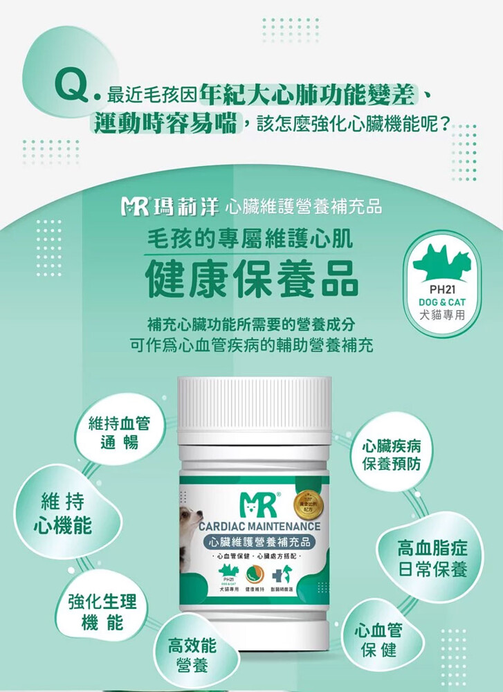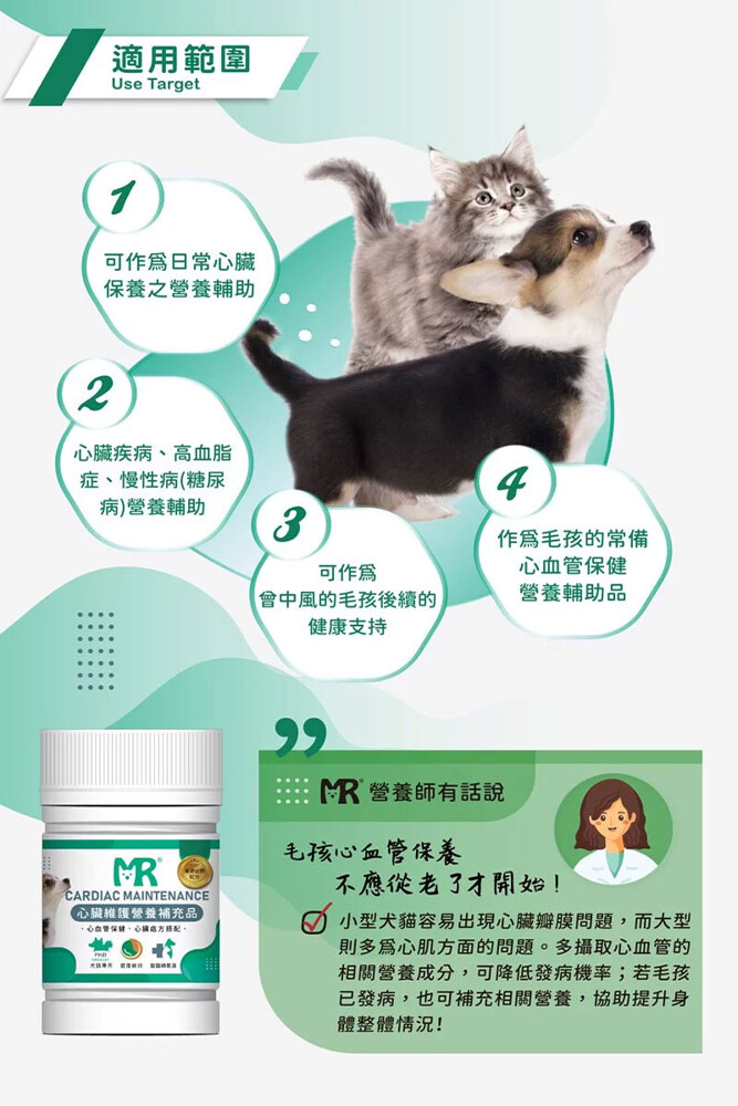 瑪莉洋犬貓用心臟維護營養補充品-適用範圍