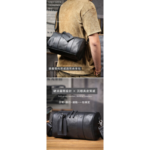商品名稱:【喜番屋】真皮頭層牛皮男士肩背包圓筒包斜背包男包【LB1197】