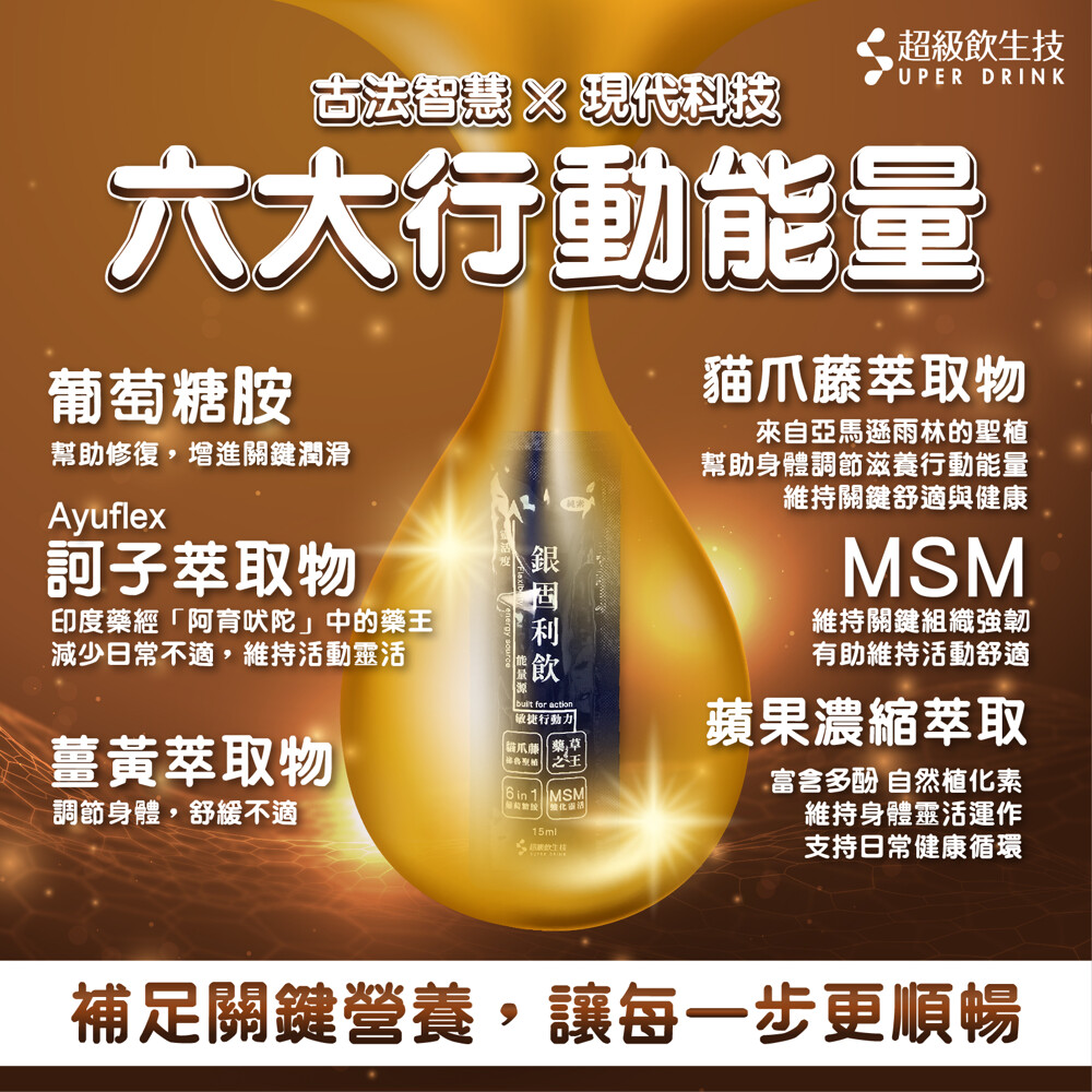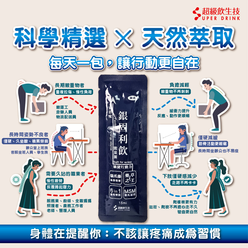 不管是長輩日常保養,還是上班族久坐、運動族群保護, 銀固利飲,專為行動力打造!