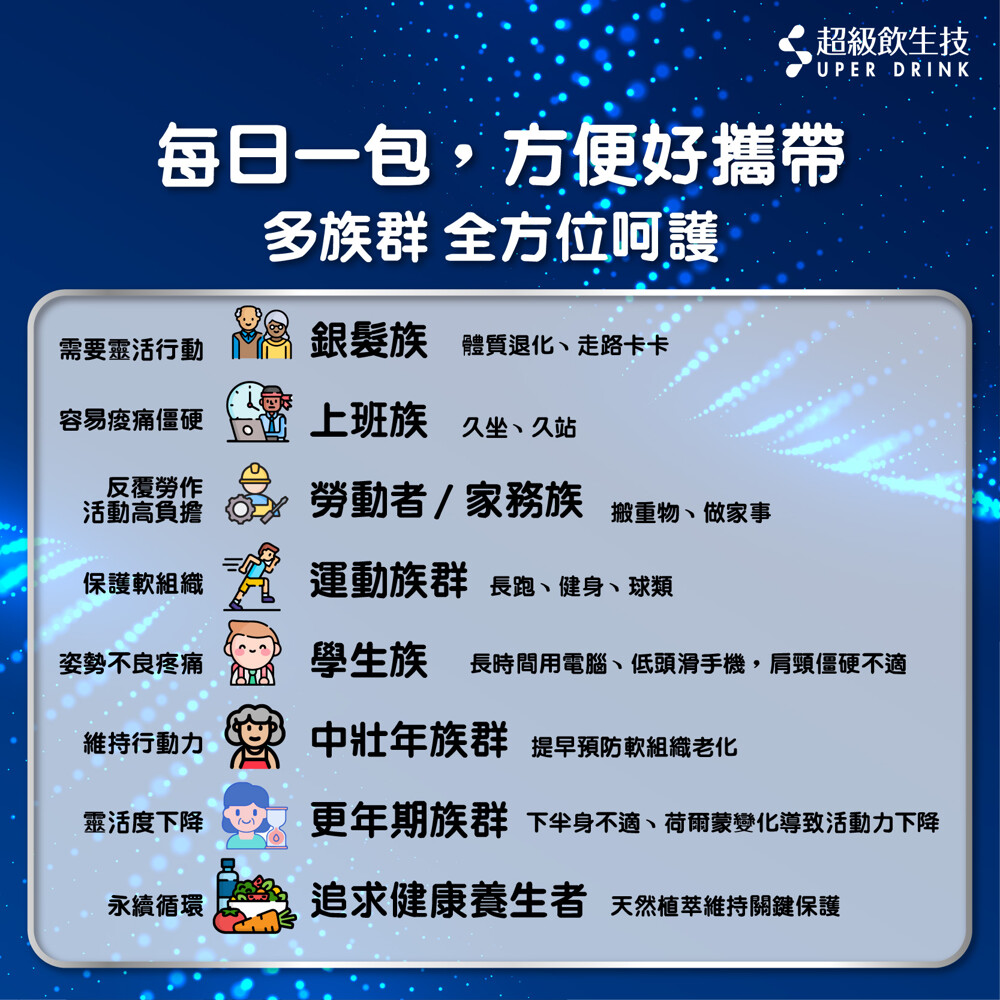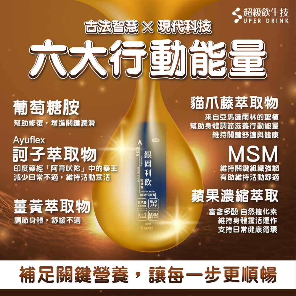 不管是長輩日常保養,還是上班族久坐、運動族群保護, 銀固利飲,專為行動力打造!