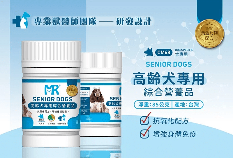 瑪莉洋高齡犬專用營養品-適用於中高齡犬,提供適當營養補充及保健,可以延緩狀況發生,讓高齡犬隻有良好的身體狀況及生活品質。