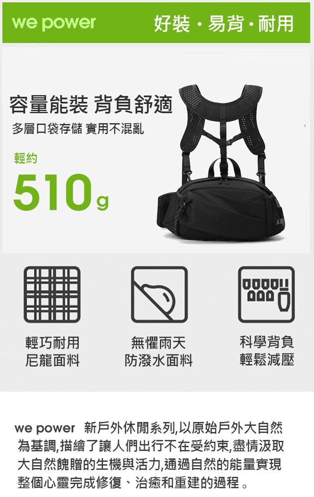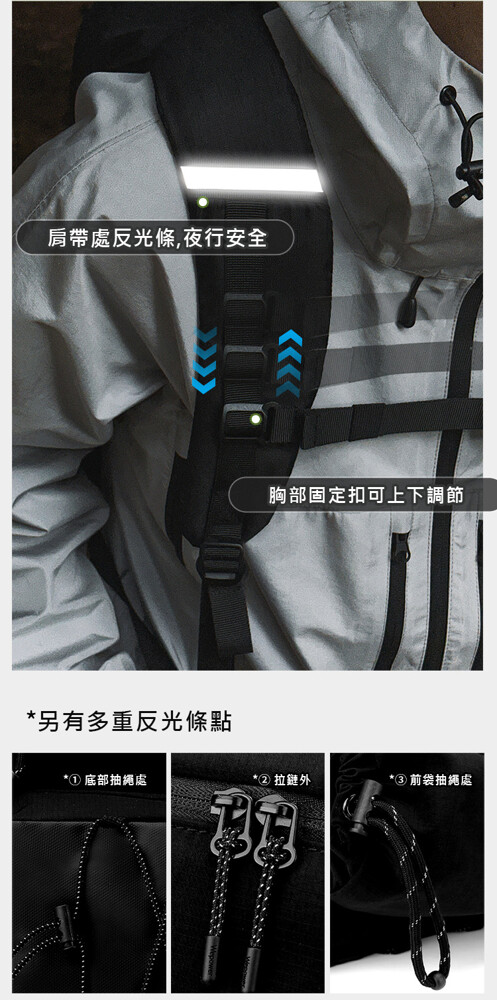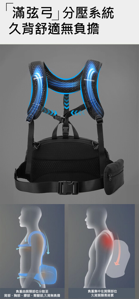 ◆承壓腰綁+可調節胸扣,減輕背部壓力