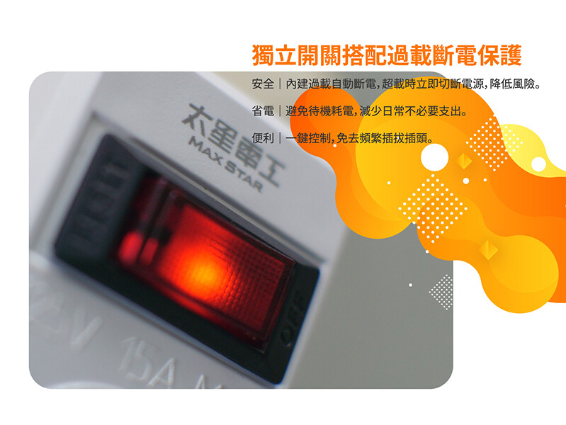 1.安全開關:電源管理,一鍵搞定,避免待機耗電。