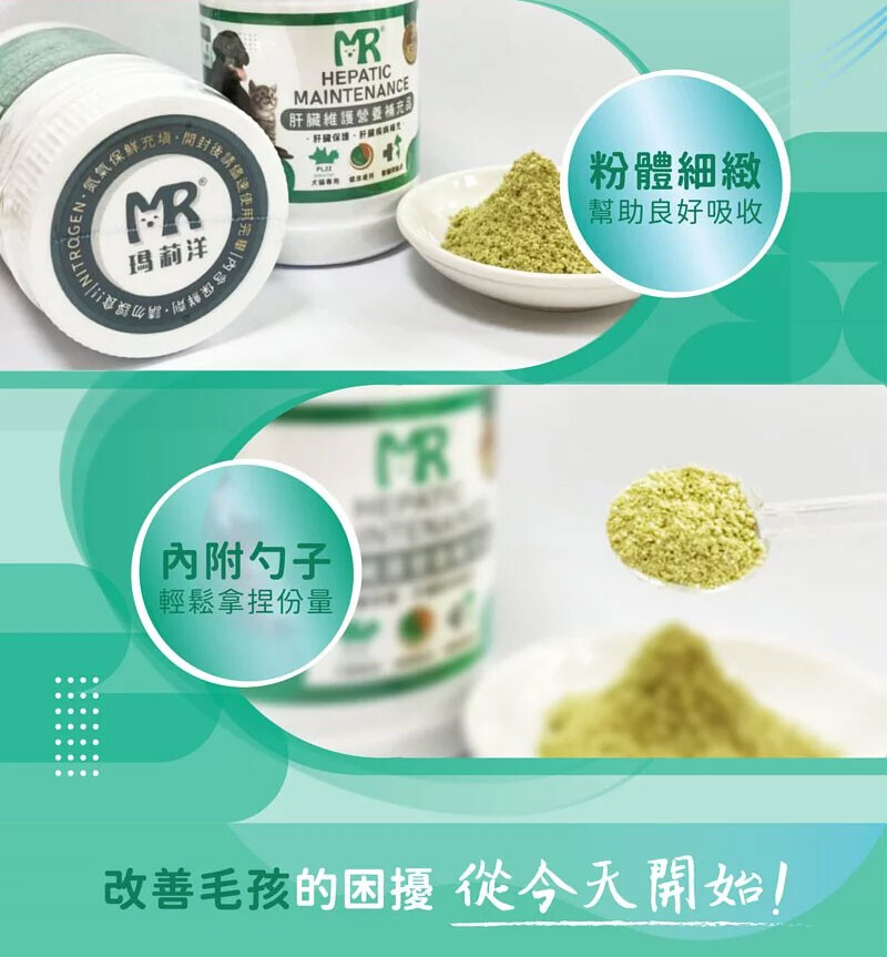 ※因應各地區包裝設計之法規規範不同,瑪莉洋寵物營養粉系列已經將包裝設計調整為符合各地區法規之專有包裝。為保障消費者之權益,請消費者選購官方授權之代理商/店家通路,安心選購瑪莉洋系列產品。