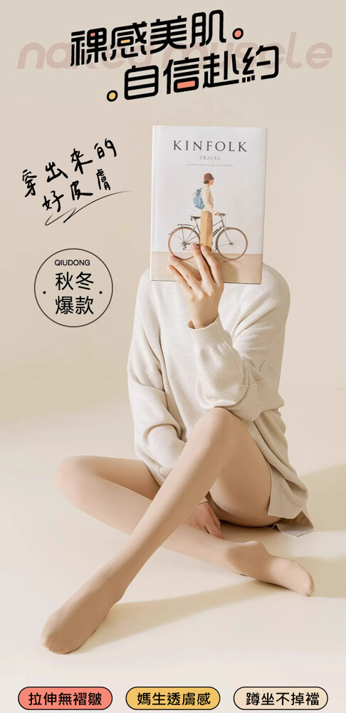 雙層編織,內層加絨保暖舒適,外層不勾紗絲襪,親膚自然,秋冬膚系美腿顯瘦指南