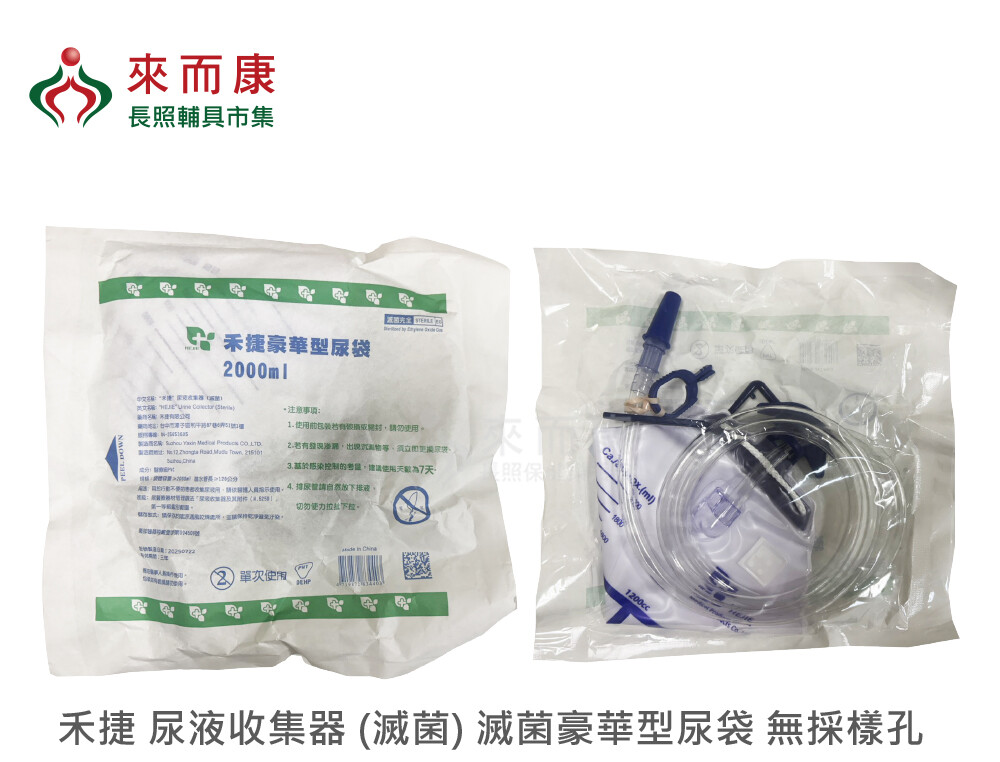 來而康 禾捷 尿液收集器 (滅菌) 滅菌豪華型尿袋 無採樣孔 2000ml 70包/箱 豪華型 尿袋