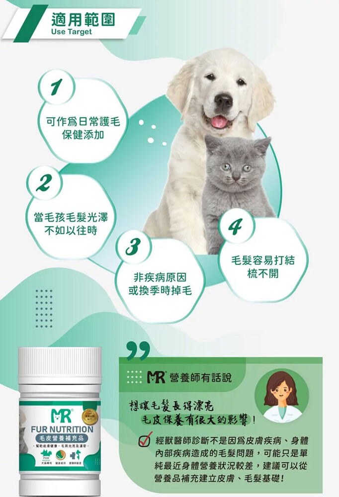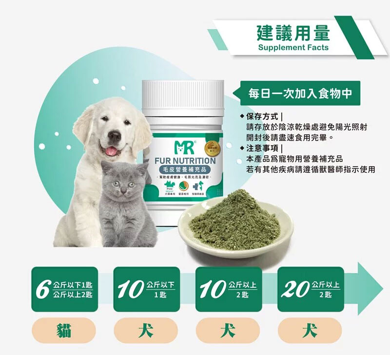 !!注意!! **如果犬貓有嚴重皮膚疾病是無法靠營養品改善,還是需要先詢問獸醫師,再行補充使用。