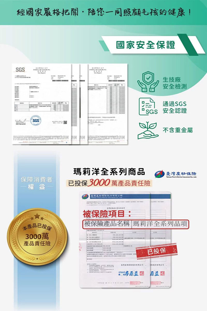 ※因應各地區包裝設計之法規規範不同,瑪莉洋寵物營養粉系列已經將包裝設計調整為符合各地區法規之專有包裝。為保障消費者之權益,請消費者選購官方授權之代理商/店家通路,安心選購瑪莉洋系列產品。