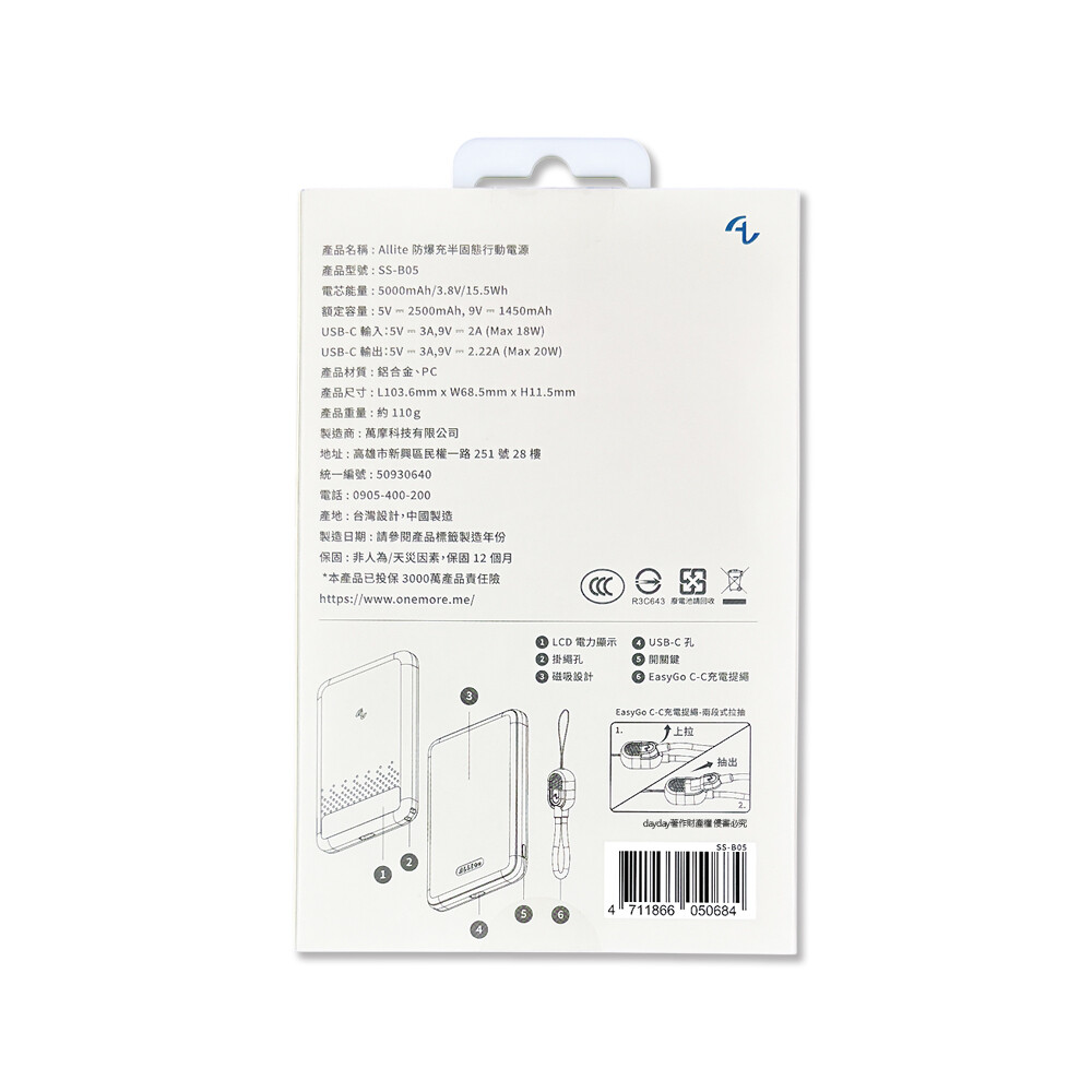 產品名稱:Allite防爆充半固態行動電源5000mAh