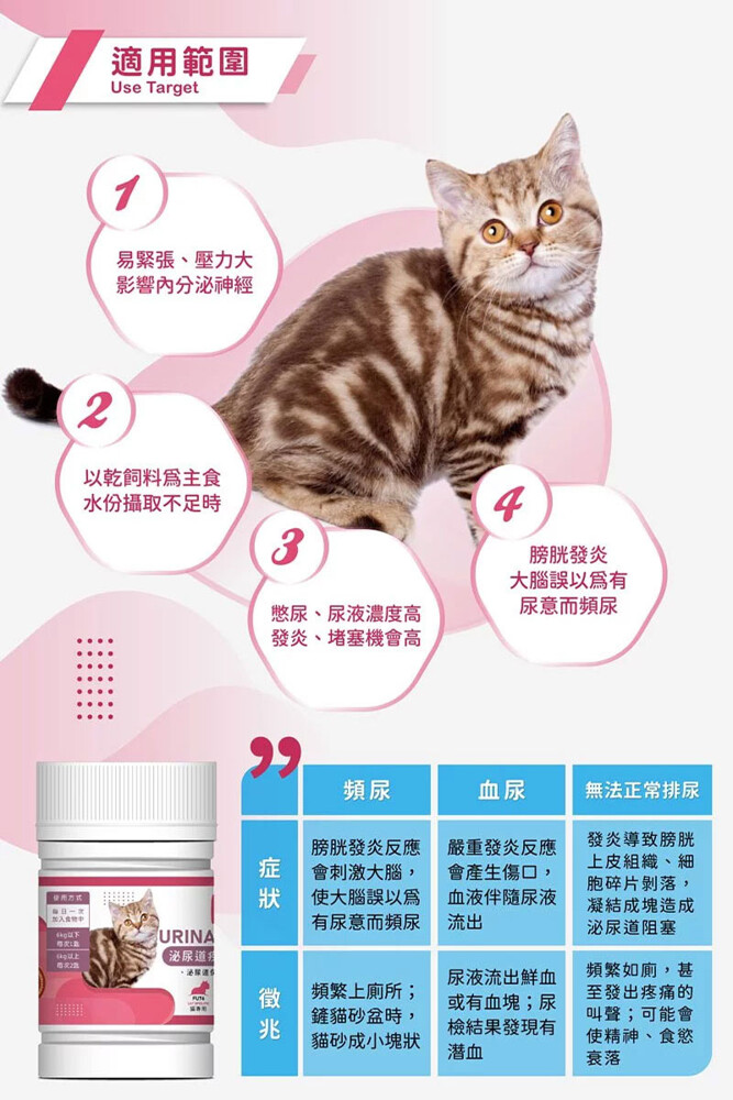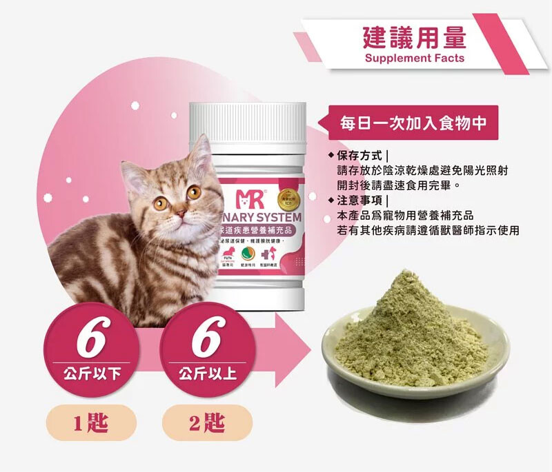 *如果已經出現泌尿道疾病,建議諮詢獸醫師,請獸醫師評估是否可以服用營養品輔助補充營養。