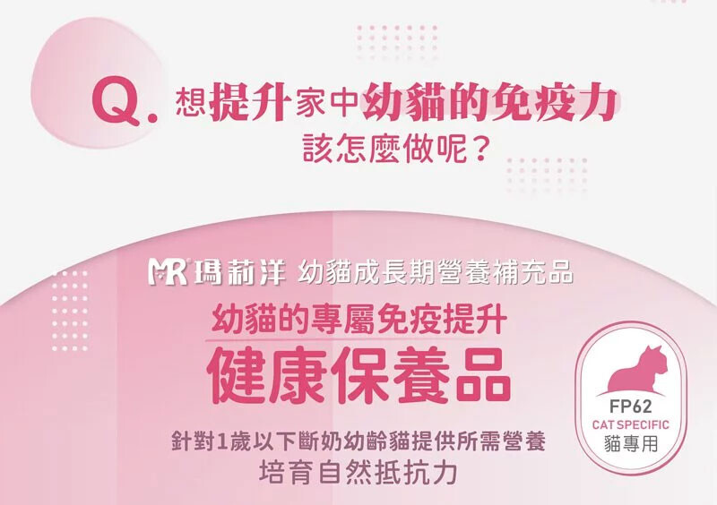 含豐富營養素,打好幼貓基礎健康,提供保護力,健康成長。
