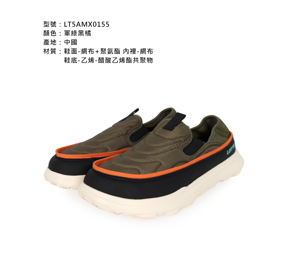 LOTTO 男輕便休閒鞋-休閒 懶人鞋 走路鞋 輕便鞋 軍綠黑橘