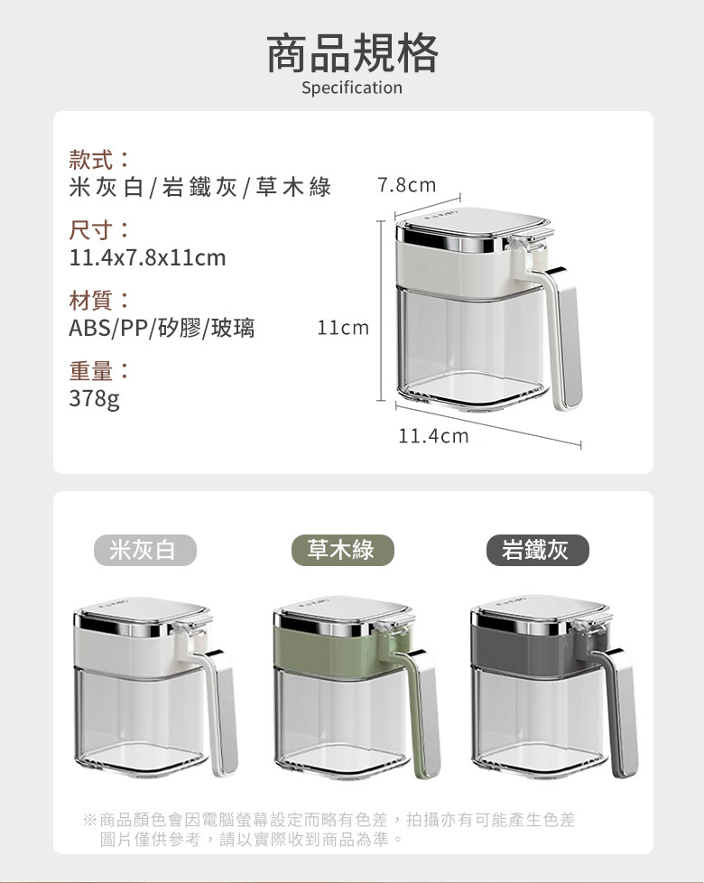 | 尺寸 | 高度: 11cm 直徑: 7.4cm 重量: 378g |