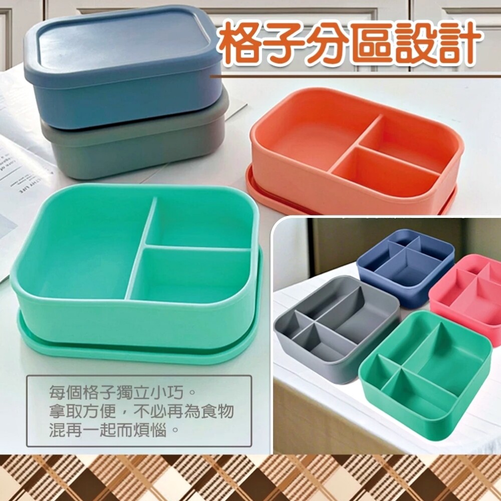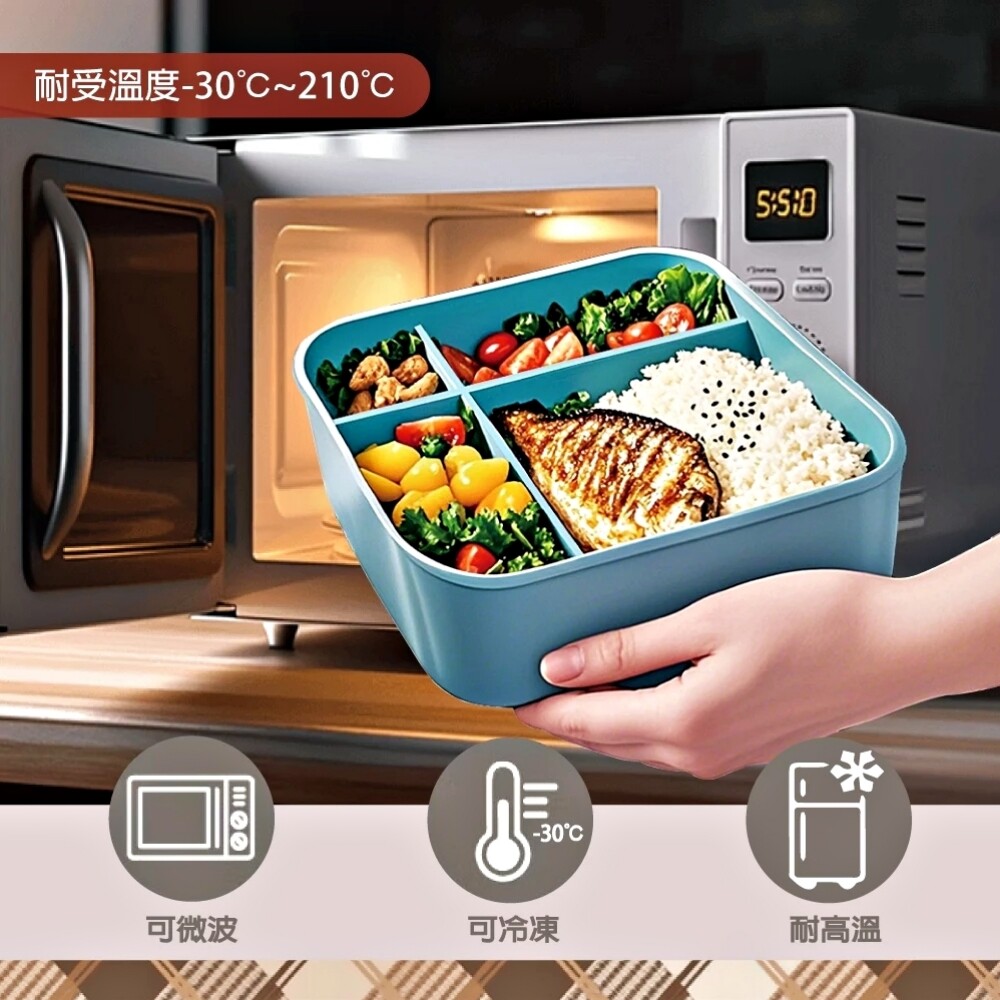 Mindéa 食品級矽膠方形分格便當盒 1590ml 四格